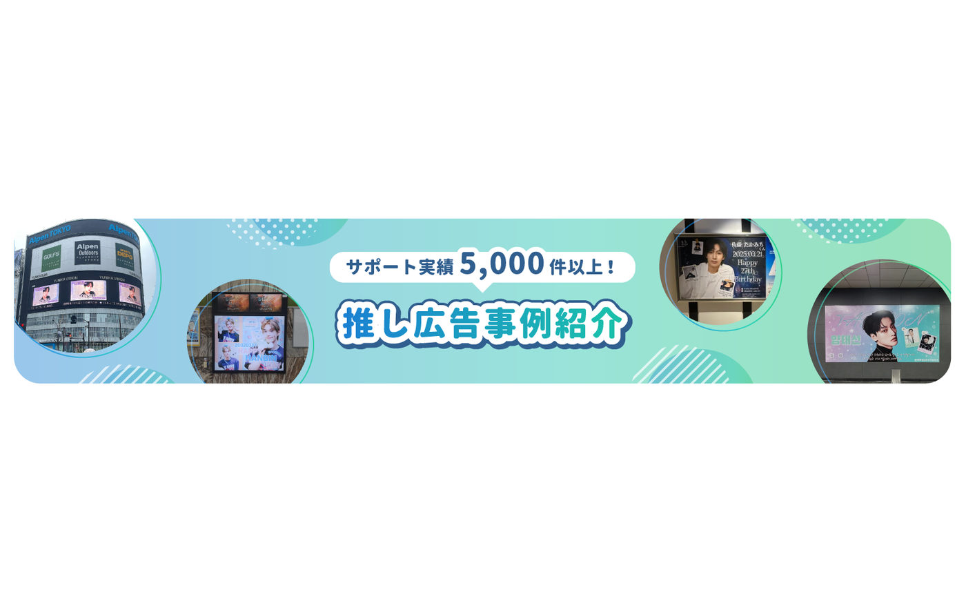 - 2025.10.18 【期間限定】推し広告®︎許諾申請代行費 無料キャンペーン実施のお知らせ