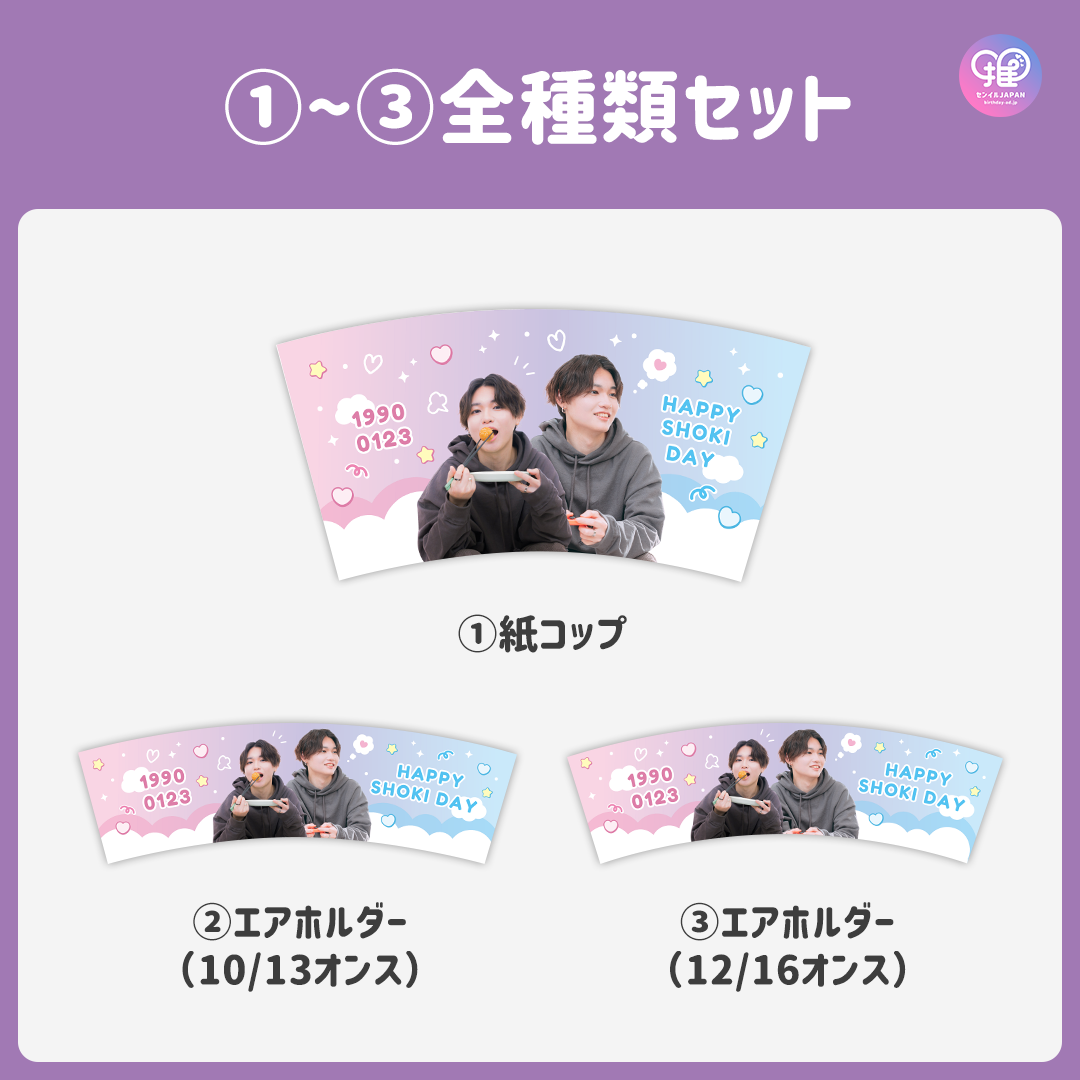サイズ | ①紙コップ ②エアホルダー(10/13オンス) ③エアホルダー(12/16オンス) |