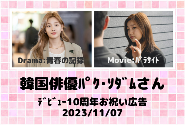 nice to meet you. My name is DAMSMILEJAPAN, who supports Korean actor Park Sodum. Thank you for visiting the 10th anniversary celebration advertising project.