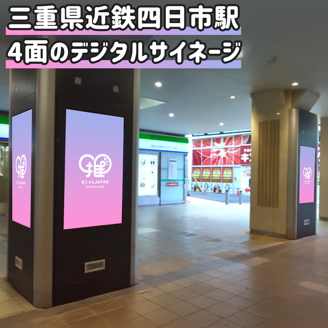 三重県最大の都市で県内で最も乗降客数の多い「近鉄四日市駅」の北口の柱を利用した計4面のデジタルサイネージ!